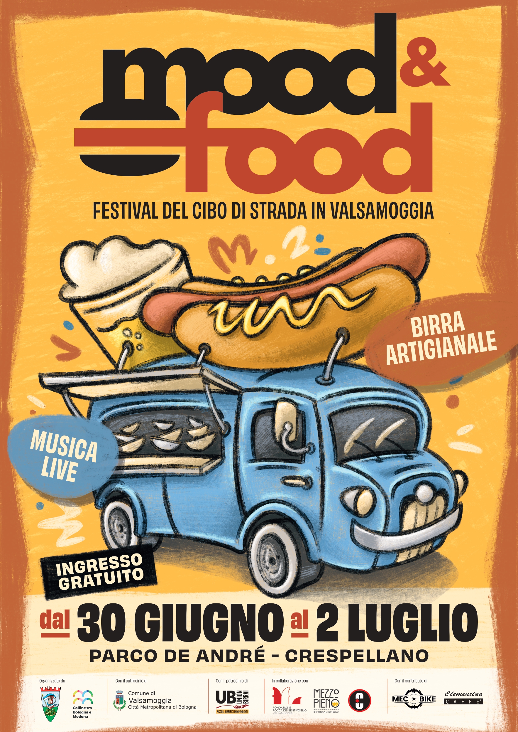 Da Venerdì 30 Giugno a Domenica 2 Luglio, al Parco De Andrè di Crespellano (Valsamoggia) ritornerà "Mood&Food", il festival in Valsamoggia che promuove le migliori specialità regionali dello street food made in Italy: